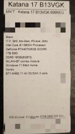 Tuote: MSI Katana 17 B13V 17,3" i9-13900H RTX 4070