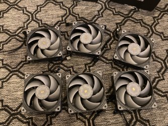 Muuta huomioitavaa: Jäivät ylimääräiseksi kun päivitin Phanteks D30:n. Yhteen tuulettimeen tehty lovi ramien takia, että mahtui paikoilleen. Mukaan ruuveja, yksi pwm jatkokaapeli ja kaapeli missä sähkö otetaan sata-liittimestä ja on kaksi eri pwm-ohjausta.