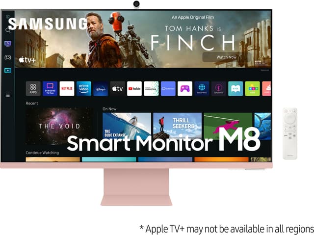 32" Samsung Smart Monitor M8 -näyttö tarjoaa kaiken tarvittavan kotona työskentelyyn ja viihteestä nauttimiseen. UHD-resoluution ansiosta kuva on huipputerävä, ja SlimFit-webkamera mahdollistaa videokonferensseihin osallistumisen.